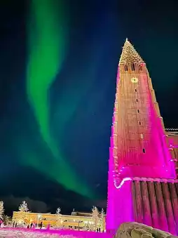Seeing the Aurora in Reykjavik is one of Iceland’s most magical experiences. On clear, dark nights, the sky above the city can suddenly come alive with shimmering waves of green, purple, and pink light. These natural lights, also known as the Northern Lights, are caused by solar particles colliding with the Earth’s atmosphere. While Reykjavik is a city with lights, it’s still possible to witness this stunning show from spots like Grótta Lighthouse, Öskjuhlíð Hill, or the shorelines around Seltjarnarnes. The best viewing season is from September to April, when nights are longest. Watching the aurora dance above the sea and snow-covered mountains feels peaceful and otherworldly, as if nature is painting across the sky. For an even better view, many people take short night tours away from city lights into the countryside.