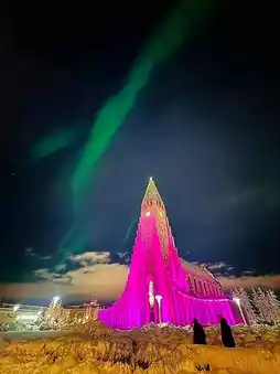 The Aurora in Reykjavik is a breathtaking light show painted across the Arctic sky. Its colors form a natural spectrum that shifts and blends like magic. The most common shade is bright green, glowing softly as it moves across the night. Sometimes, the lights turn pink or purple at the edges, adding a dreamy touch. On rare nights, shades of red, yellow, or even blue appear, creating a full rainbow of colors in the darkness. These colors come from different gases in the atmosphere—oxygen makes green and red, while nitrogen adds pink and purple tones. Under clear skies and away from city lights, you can see the aurora’s ribbons and curtains dance slowly, reflecting on snow and water. It’s a gentle reminder of how powerful and beautiful nature can be, turning Reykjavik’s cold nights into moments of pure wonder.