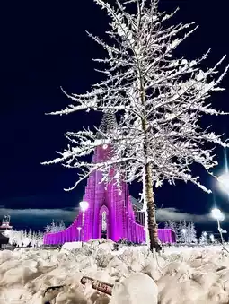 In the evening, its colorful illuminations create a magical glow against the dark winter sky ✨.