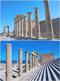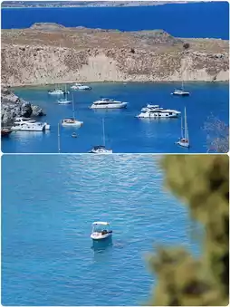 There are two more distant attractions: one is the Acropolis of Lindos, dating back to ancient Greece and Rome, completed around 300 BC. From the Acropolis looking down, you can see a natural "heart" shape formed by mountains surrounding the sea, and swimming inside is extremely refreshing; the other is Symi Island, where the harbor has many places selling boat tickets. Due to time constraints, I didn’t make it there, but I will definitely go next time.