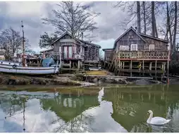 Many of the houses are built on pilings or are floating houses. Some structures date from the late 19th century to the mid-20th century.