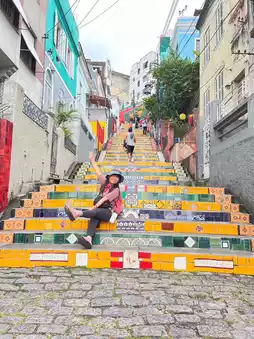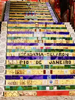 The Selarón Steps (Portuguese: Escadaria Selarón) are a world-famous staircase located in Rio de Janeiro, Brazil, from Joaquim Silva Street to Martín Street, spanning the Lapa and Santa Teresa neighborhoods. The Selron Stairs have a total of 215 steps, are 125 meters long, and use more than 2,000 tiles from more than 60 countries around the world.