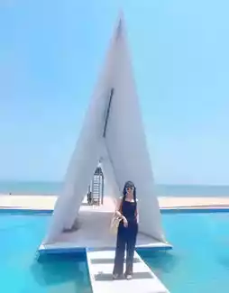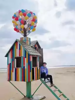 Went to a cafe, where we could take a nap, chat, or take photos. So relaxing~ After resting, we went for a walk by the sea.