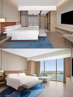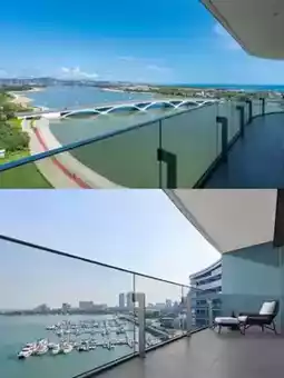 Upgraded suite in 7th floor sea view room with oversized balcony with good view of lighthouse and world sailing base Large room size, probably 100 square, 60+ inch TV, one good spare brand for bedroom and living room.