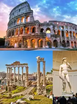 - Rome: Colosseum, Trevi Fountain, Pantheon