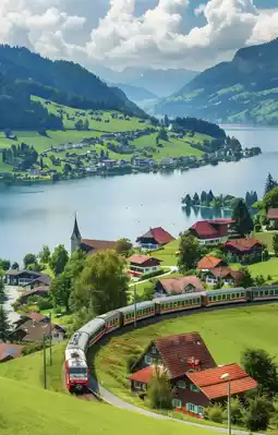 • Interlaken: A watch paradise on Hoheweg Street⌚ Nestled between two lakes, the town offers a blend of lake and mountain scenery. Shop for watches or try skydiving for a mix of tranquility and adventure.