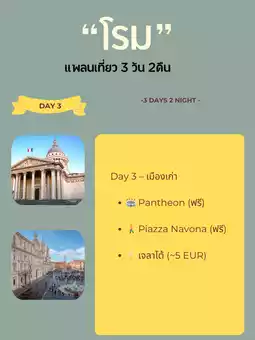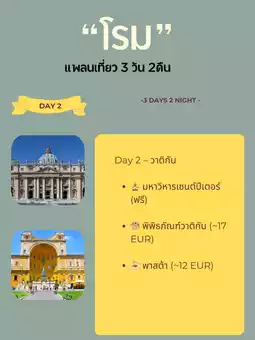 In total, a three-day trip to Rome costs โฌ200โ250, which is plenty for visiting major landmarks, sampling delicious food, and soaking up the vibrant atmosphere of this ancient city. ๐๏ธ