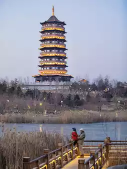 ② Yuerong Park is very beautiful when the lights are turned on in the evening