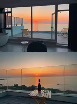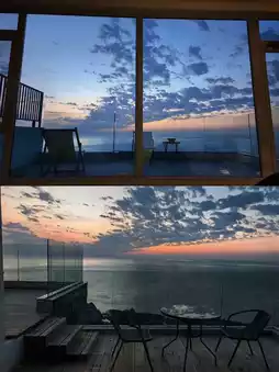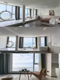 The room faces the sea directly 🌊 With floor-to-ceiling windows and a balcony, you can lie down and enjoy the breathtaking sea views, gorgeous sunsets, and evening glow. Every shot is postcard-worthy 📷 Especially in the evening, when the sunlight pours in, it’s so romantic—like living in a painting!