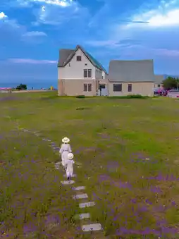 🏡Seaweed-thatched cottages (ocean view, surrounded by purple flower fields)