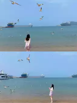 2. When feeding seagulls on Hailv Island, remember to wear a hat to avoid “surprise gifts from the sky.”