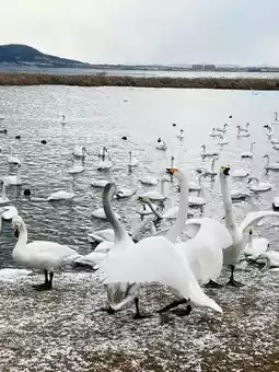▪️ Buy 5 yuan corn kernels, squat down for "swans begging for food face-to-face"! Social post caption: "The joy of being melted by cuteness"