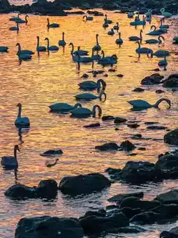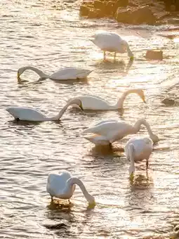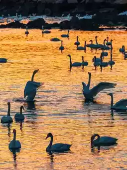 At Swan Bay in Yandunjiao Village, the sunset is a grand finale. The afterglow spreads over the shimmering lake surface like a light golden veil, with gentle ripples full of dreaminess and poetry. Swans stretch their necks, their feathers glowing in the afterglow, forming elegant silhouettes between water and sky, swaying in the light as if whispering softly, telling the tranquility and tenderness of this bay. As the sun gradually disappears, the vast glow of the sunset is Swan Bay’s last affection for the daylight and a breathtaking painting gifted to the world.