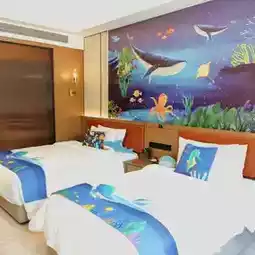 The hotel provides soft, skin-friendly, and anti-mite bedding suitable for children's skin, printed with cartoon patterns.
