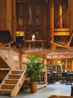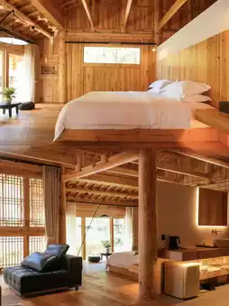 Moonlight Mountain Residence uses traditional Dong ethnic wooden structure architecture, and the all-wood design makes you feel like you've traveled back to an ancient Dong village. Each room faces the river or backs onto a bamboo forest, and the most stunning feature is the smart air conditioning system in the room, making it warm and comfortable even in the mountains.