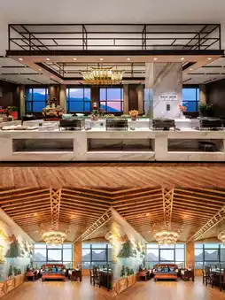 Dining is the hotel's "taste signature," with the chef team embracing the concept of "seeking the flavors of Qian land" to create new culinary experiences with local ingredients. The Rongjiang rice rolls at breakfast are a must-try, with soft rice sheets wrapped around pickled long beans and minced meat, full of homely flavors; lunch features sour soup beef made from Guizhou native yellow cattle, paired with homemade red sour soup, which is both appetizing and refreshing; dinner’s classic Qian dish, fermented spicy fish, is steamed with fresh fish wrapped in fermented chili, tender and richly aromatic. For a light meal experience, the afternoon lobby bar offers "Qian-flavored afternoon tea," with red bean paste pastries and rice cake porridge served on bamboo trays, accompanied by a cup of prickly pear sparkling water, sweet and sour and refreshing—a small delight for the taste buds.