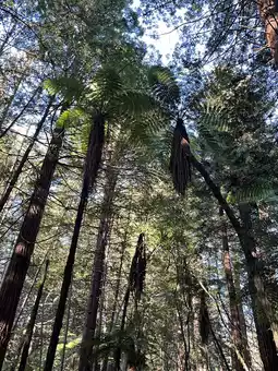Sunlight filters through the towering 60-meter-high redwood trees, filling the air with the fresh scent of leaves and a light mist. This place feels like a scene straight out of a Studio Ghibli animation.
