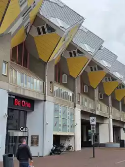 Designed by Piet Blom, these tilted yellow cubes are an architectural icon. Step inside the Show Cube Museum to experience what living at an angle feels like!