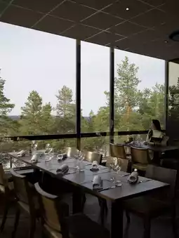 Guests can enjoy breathtaking views of the Ounasvaara forest through large windows, and depending on the season, they may also witness the aurora borealis or the midnight sun while dining. 🕊️