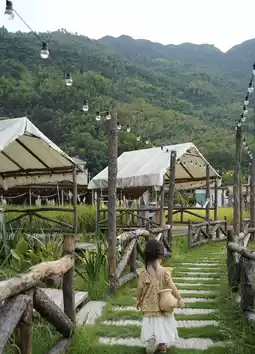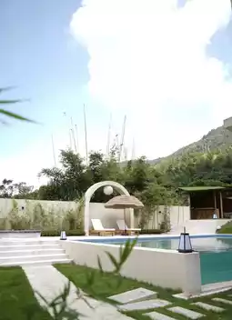 We stayed at a homestay themed around intangible cultural heritage, where you can find elements of blue calico everywhere. The place features a swimming pool, a garden, a farm, and even a camping base.
