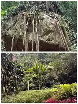 - Tree-wrapped stone: The thick roots of the banyan tree straightly embrace the boulder, making one side of the bottom of the stone completely suspended, and then the roots are directly inserted into the ground, which is spectacular and a magical rainforest wonder.