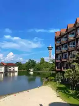Within the 450+ mu park, there are artificial lakes and tropical plants hidden.