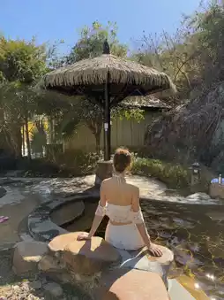 The hot spring area is built in Balinese style. It not only has thatched steam sauna energy rooms, but also 40+ open-air hot springs with different themes, beauty-themed rose pools, milk, lavender, health-themed mugwort leaves, and waterfalls... to achieve a variety of hot spring bathing styles.