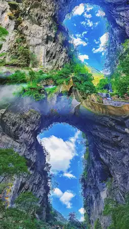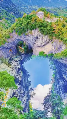 [Two] Fairy Bridge: The most spectacular natural arch bridge in China, the bridge is 198 meters long and 98 meters wide. At the bottom, there are unique landscapes of "fairy delivering a child" and "fairy pointing the way".