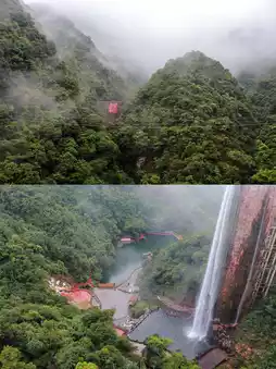 ❶Glass Bridge: 🌁The 316-meter-long glass bridge is suspended in the air, with cloud and fog effects on rainy days! When you walk to the middle, you can see the huge Chinese character "福" on the Hongfu Pan. On rainy days, the big red characters form a sharp contrast with the surrounding green hills. You can also directly face the waterfall elevator landscape, which has the momentum of "a waterfall falling three thousand feet". There are high-altitude activities nearby (high-altitude bicycles and step-by-step adventures)