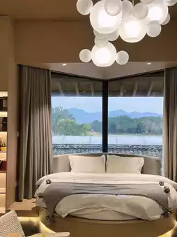 🛌 The guesthouse offers 13 rooms, each with large floor-to-ceiling windows 🖼 that bring the serene mountain views indoors. At night, snuggle into a soft bed and drift off to the natural white noise 💤 of the surroundings.