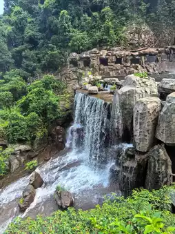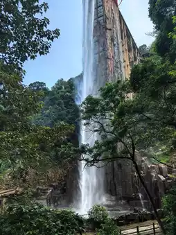 Standing on the glass bridge, you can look down at the waterfall rushing beneath your feet