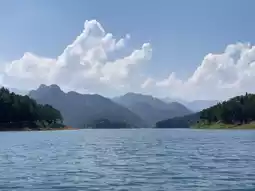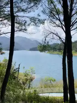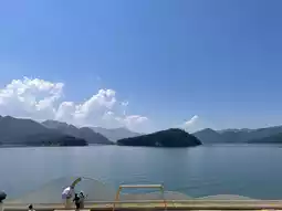 Get a drone's eye view! The entire lake looks like blue silk embedded in the mountains (Navigate to "Nanshui Lake Station")