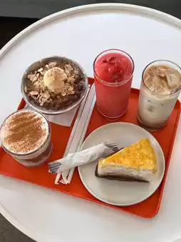 The menu is diverse, offering a wide range of choices. Popular items include cream latte, shaved ice with red beans, strawberry smoothie, and Hallabong cake ๐๐ฐ. There are also homemade syrup teas and smoothies to suit your taste!