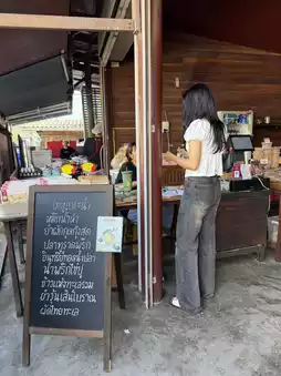 A famous rice soup shop in Bangsaen with a special menu of dry rice.