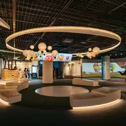 It features a simulation of the history of hot air ballooning,