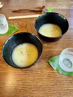 First, we mixed Japanese honeybee honey π― with hot water from underground springs, then drank it.