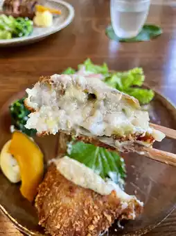The cream croquette was crispy and crispy, and the filling included eggplant, tomato, and shiso leaves tossed in cream cheese. Just hearing the description sounded delicious.