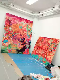 The space, crowded with palettes, brushes, and canvases, was truly a "living studio." It was filled with information you can’t get from school guides, such as individual production themes and carefully arranged tools tailored to each artist’s preferences.