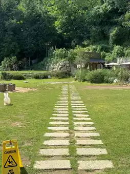 The basement and first floor are kid zones, perfect for bringing kids. The basement level features rabbits, a sandbox, and other play areas, making it a much more eco-friendly experience than a kids' cafe.