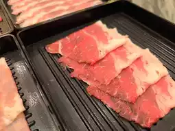 Atmosphere: Located in the ICON56 Sai Mai project, near Foodland Sai Mai, the atmosphere is clean, airy, and not stuffy. The interior is decorated in warm, clean tones of wood and white. There's a counter bar where you can scoop dipping sauces. Choose from a variety of sukiyaki sauces, spicy sukiyaki sauces, seafood sauces, ponzu sauces, vegetables, and various meatballs. Drinks include soft drinks, sodas, slushy-style blended drinks, and various flavors of ice cream. You can also order meat by scanning a scan. We ordered the premium option for 399 baht, which included Wagyu beef, Karubi beef, and Australian blade steak. The meat was excellent and of high quality. There were two types of seafood: peeled river prawns, glass shrimp, mussels, and squid. For dessert, in addition to the ice cream, they also had delicious, juicy Japanese melon.