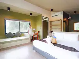 And here is called Today, Nicky stayed in a riverside room☘️ The room is very good, new, big and clean. ⭐️ There is a bubble bathtub, very nice view, especially in the morning. The weather is good and not hot. Plus, here there are many styles of rooms to choose from.