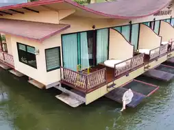 #Travel to save the world And this is Kanchanaburi province with accommodation called Binlabraf Resort, a riverside resort with many activities to do, wet rafting, paddle boarding, swimming in the pool, being close to nature, the most fun is the riverside raft house that we stayed today. Or if anyone wants to stay at a pool villa, the room is beautifully decorated. Come travel with us. #TravelKanchanaburi