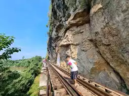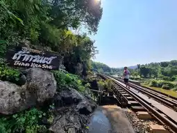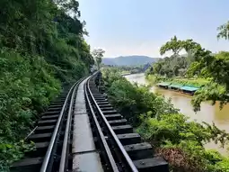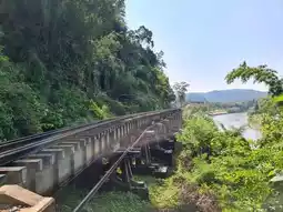 Kra Sae Cave The atmosphere is sooo good! The railway tracks along the cliffs by the water are so close to nature. Walk on the tracks and look at the Kwai River, the water is clear, the view is amazing, the wind is cool and refreshing. It is suitable for those who want to change the atmosphere to walk and get a million-dollar view.