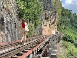 • The railway is built on a wooden bridge along the cliffs and the Kwai Noi River. The view is open and beautiful from every angle.