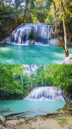 End with a refreshing visit to Erawan Waterfall, a seven-tiered waterfall cascading down beautifully. The crystal-clear blue-green water is accessible for swimming, and the hiking trail is filled with the sounds of nature. It's suitable for all ages and travel styles.