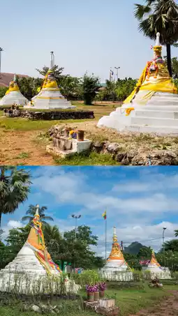 Nearby is the Bridge over the River Kwai, a significant landmark that reflects the memory of World War II. This iron bridge is more than just an engineering structure, but also a symbol of endurance and sacrifice.