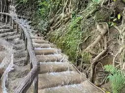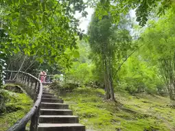 Above the waterfall is a cafe called "Yok Noi Cafe." ☕️☘️