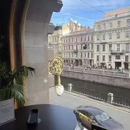 Nestled inside the Zinger House, Cafe Rene offers a truly unique experience for visitors. Its main draw is the seamless connection to a beautiful, well-stocked bookstore. You are welcome to pick any book from the shelves and bring it to your table. The atmosphere is wonderfully cozy, perfect for getting lost in a novel while enjoying a coffee. I spent a lovely afternoon reading a classic Russian work I found there. However, it is important to note that the prices are on the higher side for the city. A simple coffee and a pastry will cost significantly more than at a standard cafe. Despite the cost, the place remains incredibly popular and is often bustling. It seems people are willing to pay a premium for the unique ambience. Finding an empty seat during peak hours can be quite a challenge. Ultimately, the charm of combining literature with a caffeine fix makes it a spot worth visiting, if only once.
