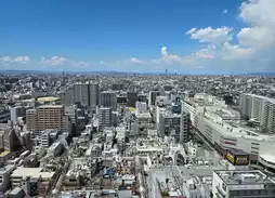 The historic city of Sakai, including the Emperor Nintoku Tomb (Daisen Tomb), spreads out below you, and in the distance you can see Mount Rokko, Abeno Harukas, Mount Kongo, and more.