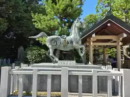 The main hall is called Otori-zukuri, and it maintains the ancient style of "gabled-roofed ... 1900 years ago, when everyone was mourning the death of Emperor Yamato Takeru, his spirit turned into a swan and flew away from his tomb, landing at Kotobikihara in Yamato (now Kotobikihara Shiratori Mausoleum) and Furuichi in Kawachi Province (now Furuichi Shiratori Mausoleum Kofun). At the place where he landed, a shrine was built and Emperor Yamato Takeru enshrined.